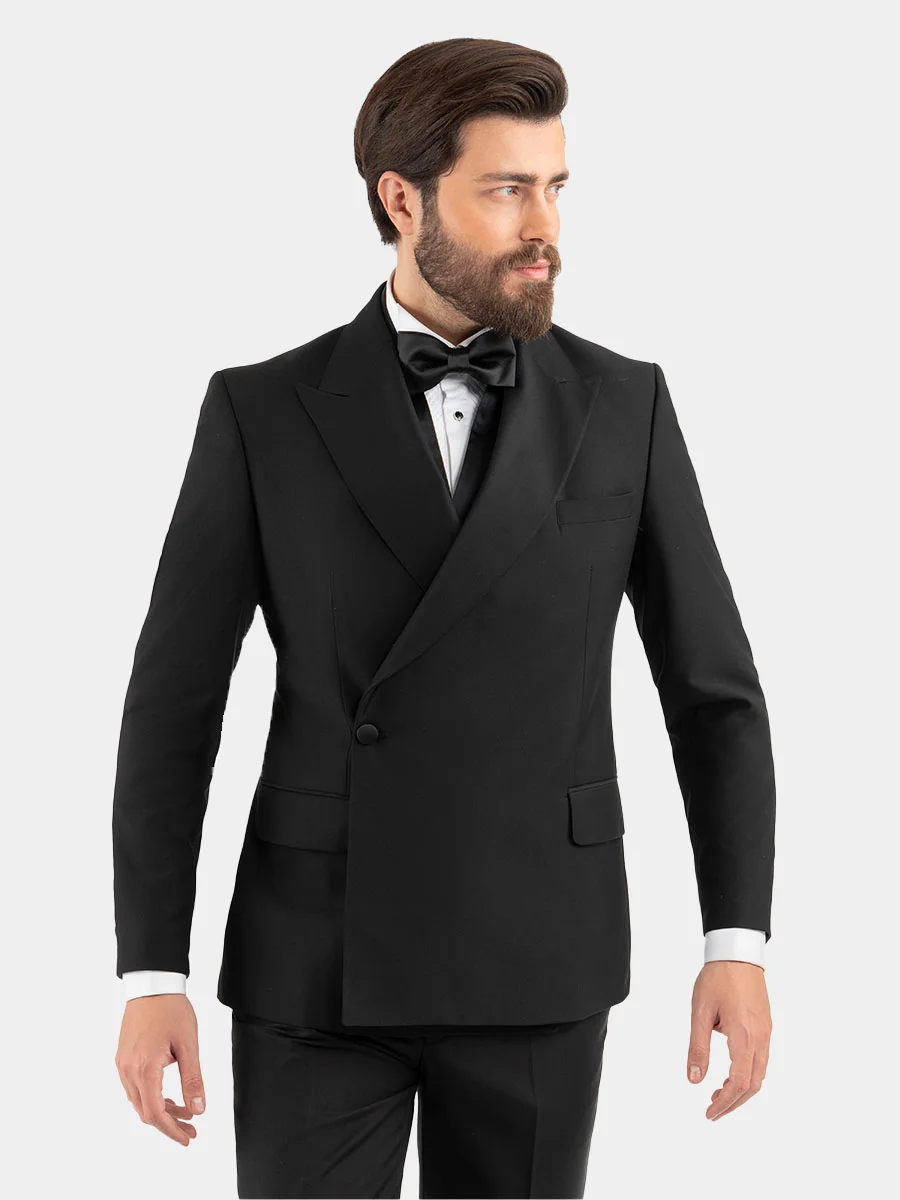 Command attention with the Asymmetrical Black Suit —a striking blend of contemporary design and timeless sophistication. Featuring a unique asymmetrical closure and a sleek double-breasted silhouette, this suit exudes confidence and modern elegance.