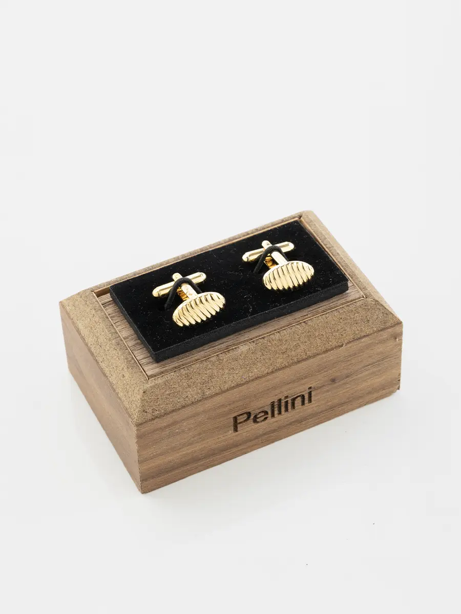 Crafted in a polished gold-tone finish with a finely ridged oval face, the Aurora Ridge cufflinks offer timeless sophistication. Their textured design reflects light subtly, making them an ideal choice for formal events and refined business attire.