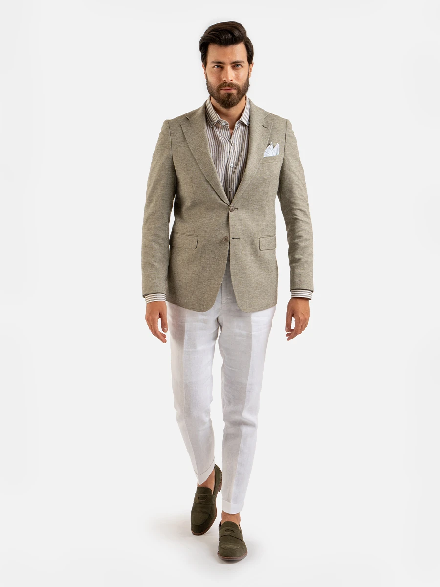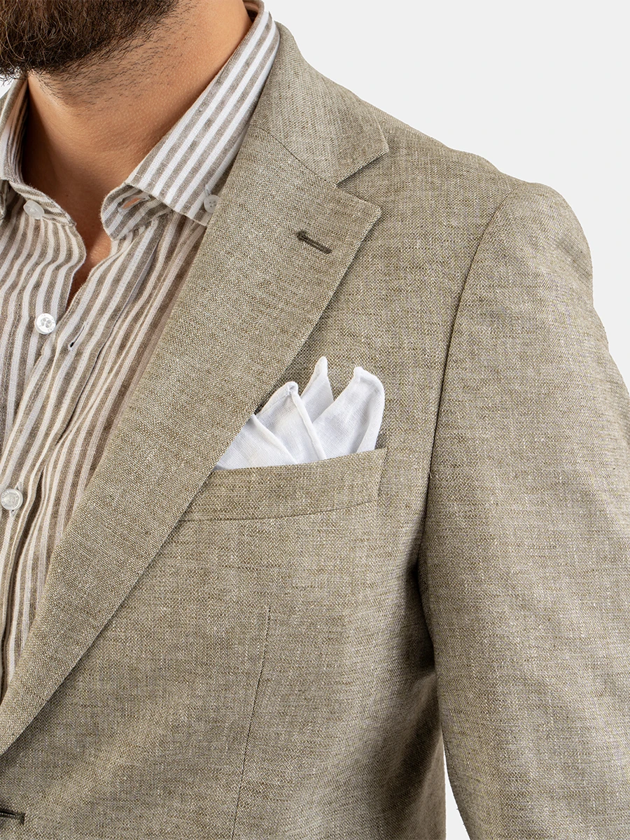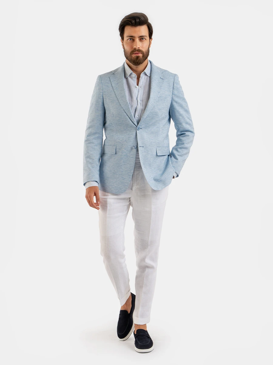 Crafted from breathable linen, this tailored blazer offers a refined yet relaxed silhouette—ideal for warm-weather dressing. Designed with a classic notch lapel, flap pockets, and a lightweight structure, it pairs effortlessly with shirts or polos for both formal and casual occasions.