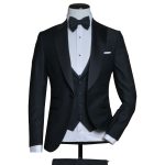 Stand out with our new ceremony glitter tuxedo, the perfect choice for your wedding. This suit comes in 4 pieces set that includes jacket, pants, bowtie, and a vest.