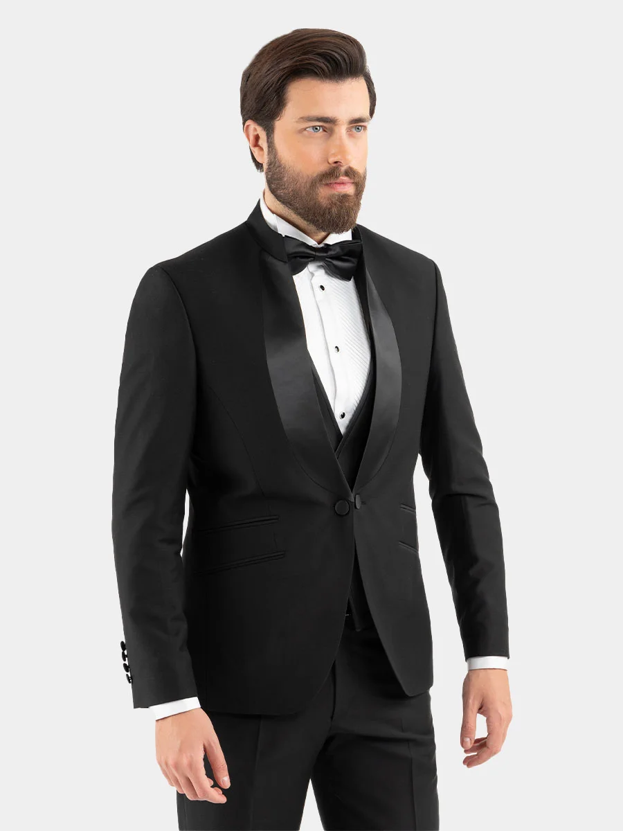 Refined and distinctive, the Col Mao Satin 8B Ceremony Suit redefines evening elegance. Featuring a sleek Mao collar and luxurious satin shawl lapel , delivers a sharp And Elegant look.