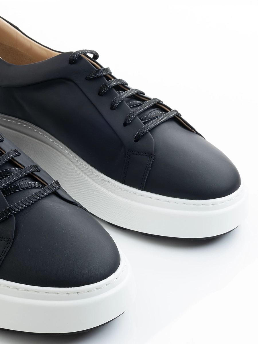 Crafted in premium smooth leather, these platform sneakers offer a modern, elevated silhouette with exceptional comfort. Designed with a cushioned sole for all-day wear and detailed with tonal stitching and refined laces. A clean, versatile sneaker that pairs effortlessly with both casual and smart-casual looks.