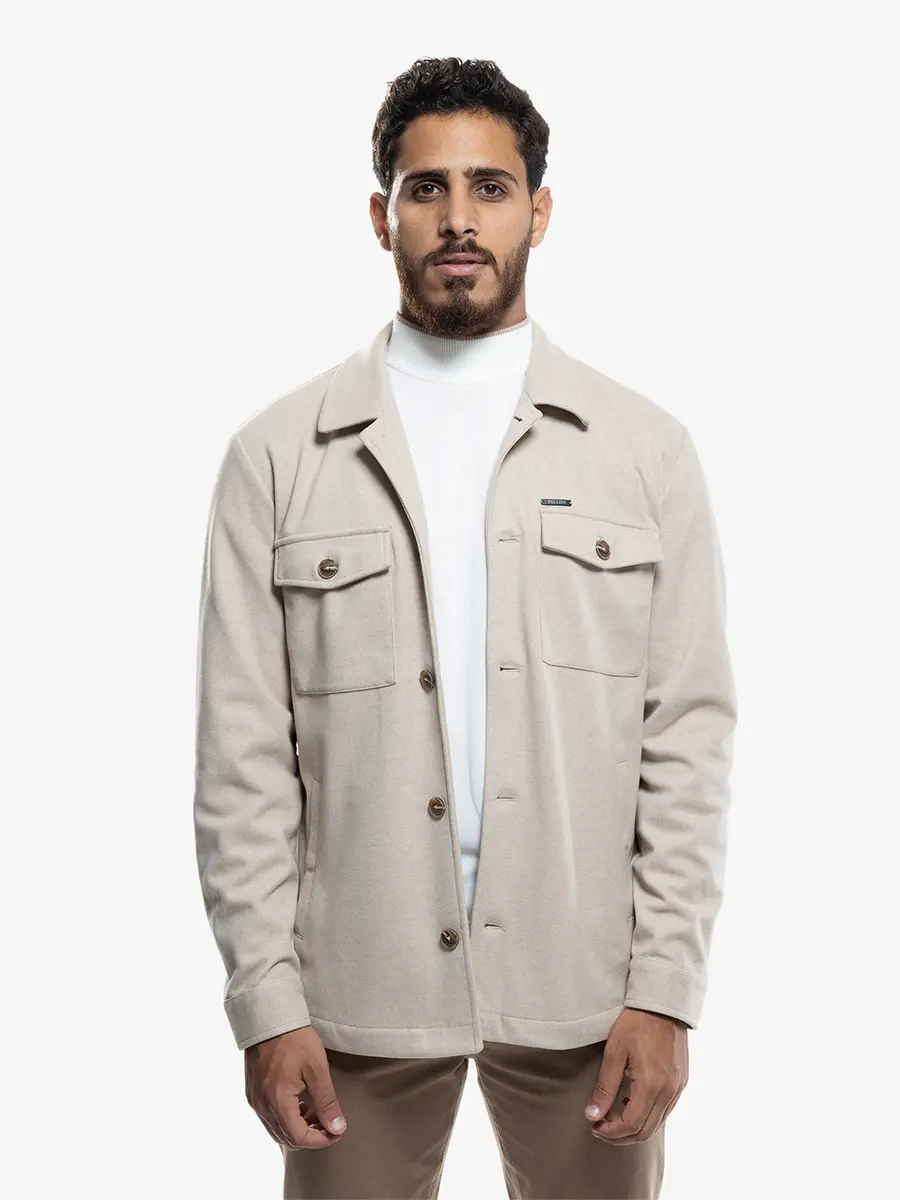 Crafted from a soft brushed fabric, this overshirt jacket delivers warmth, comfort, and effortless style. Designed with dual flap chest pockets and a clean button-down front, it offers a modern utility-inspired look that works for both casual and smart-casual outfits. Its structured yet comfortable feel makes it perfect for layering over T-shirts, knitwear, or turtlenecks.