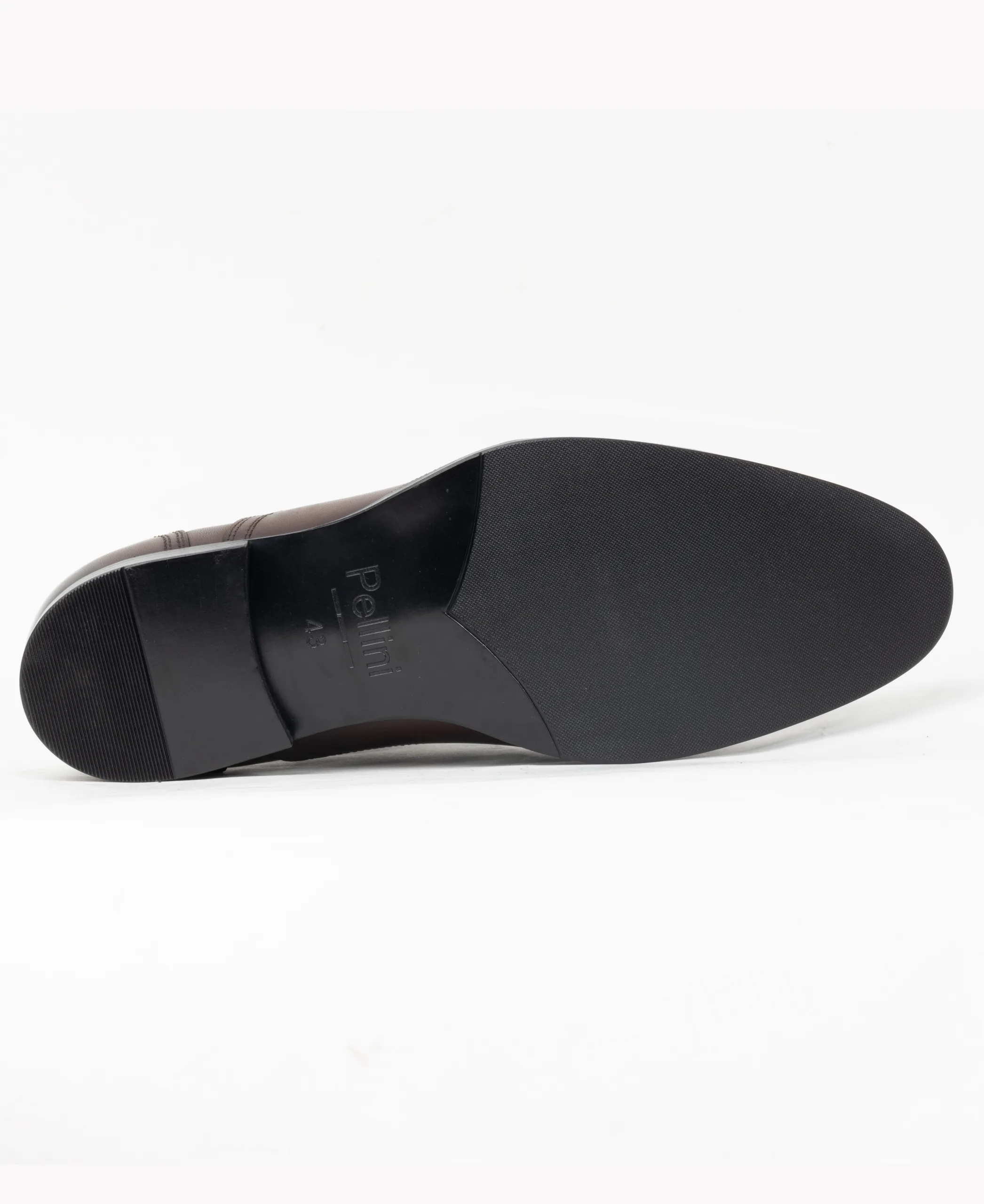 Black leather classic Kensington shoes from Pellini collection featuring a low block heel, an almond toe, a lace-up front fastening and a branded insole.