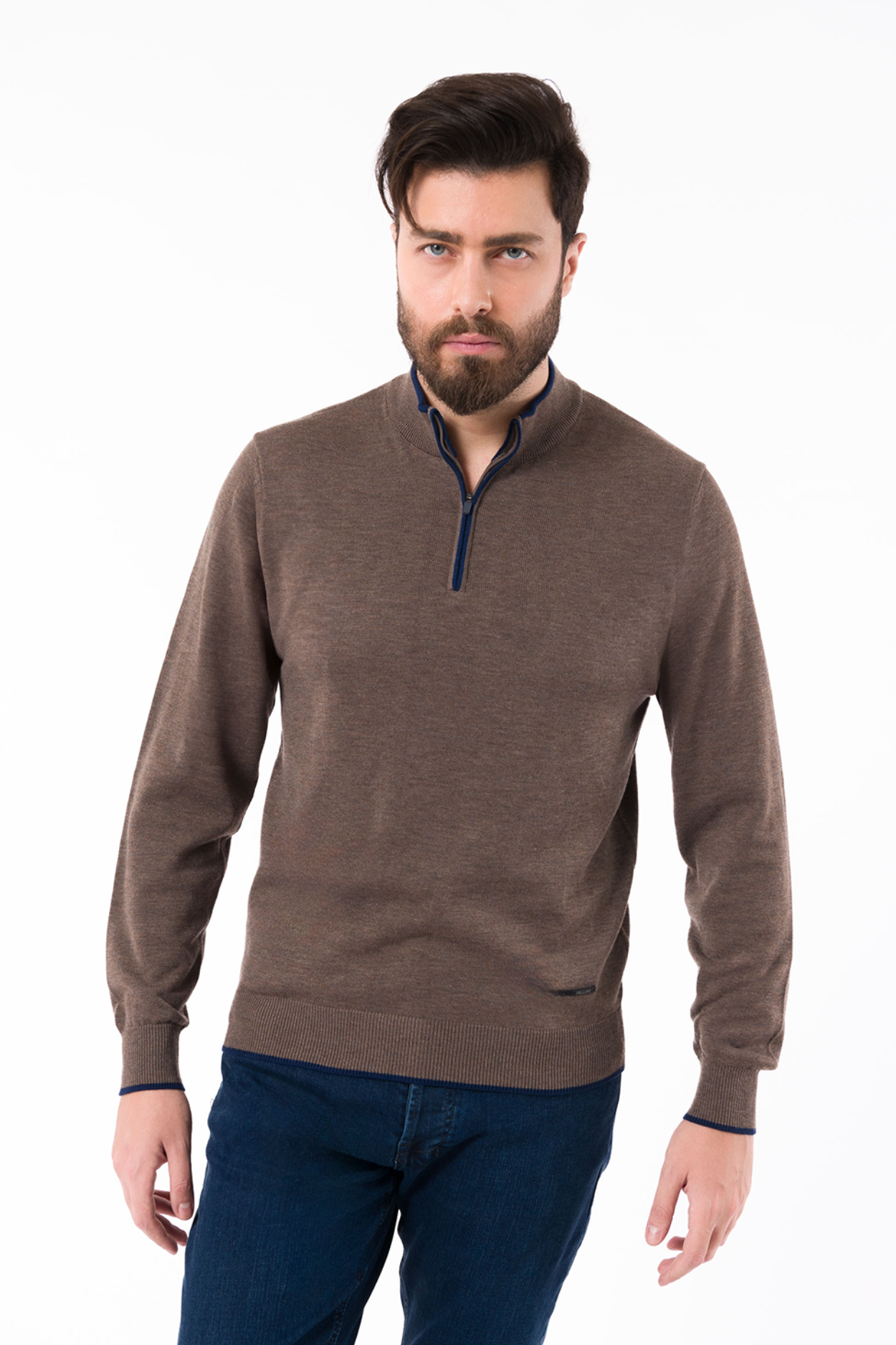 This quarter-zip sweater is crafted from a soft wool blend, offering natural warmth and breathability for cooler days. Available in a range of versatile colors, this wool-blend sweater is ideal for layering over shirts or under jackets throughout the fall and winter seasons.