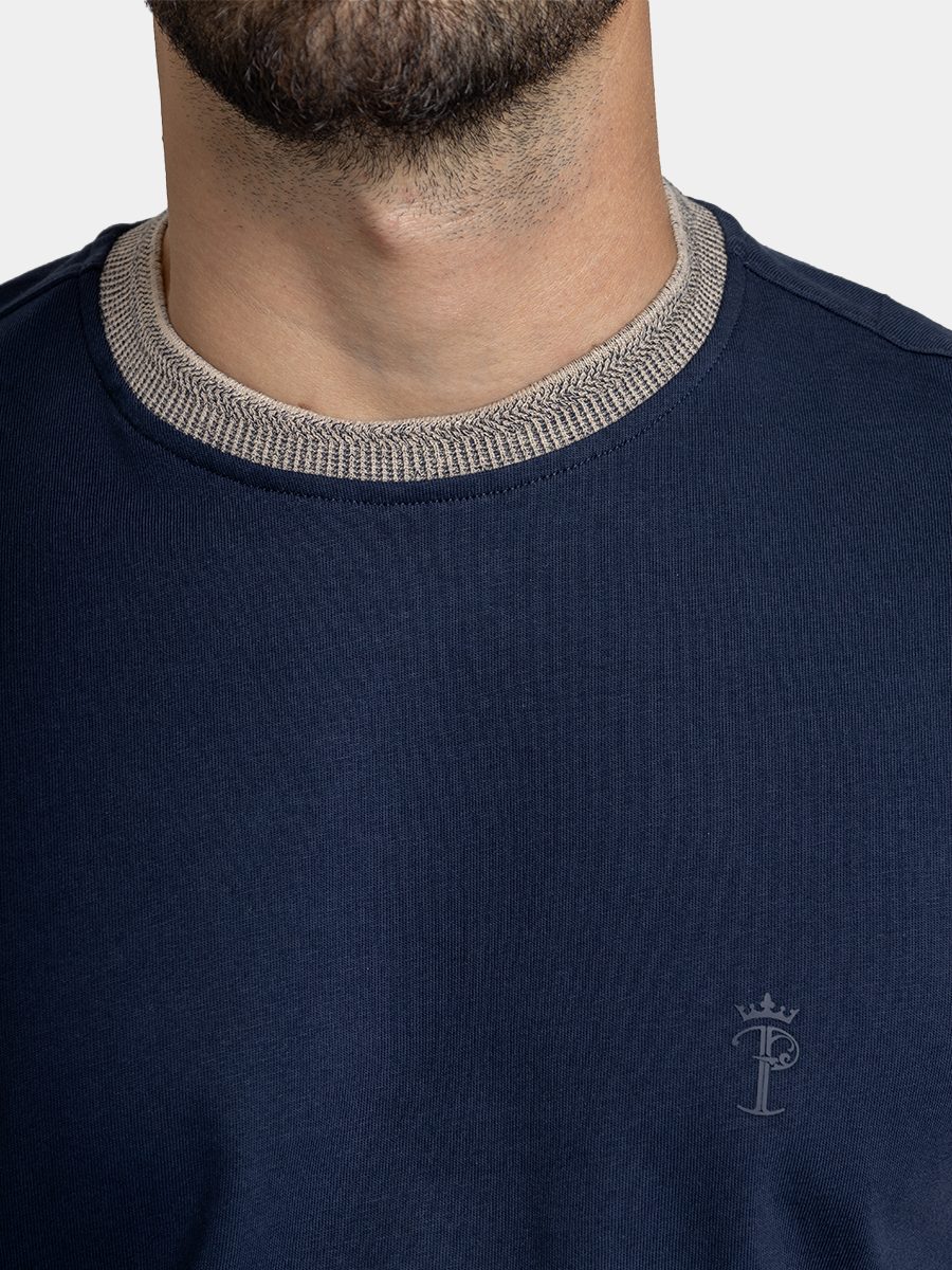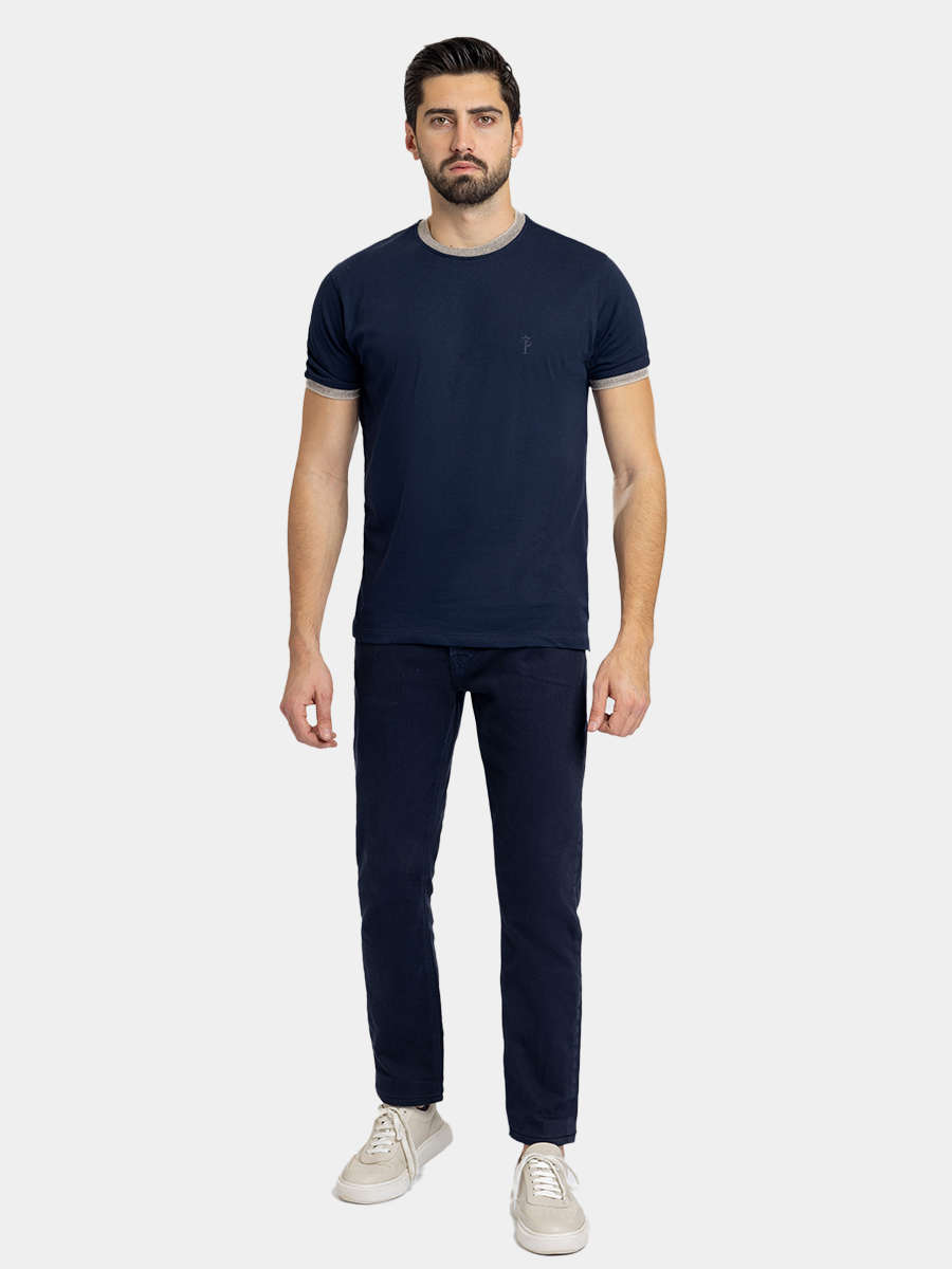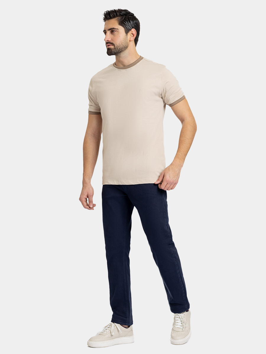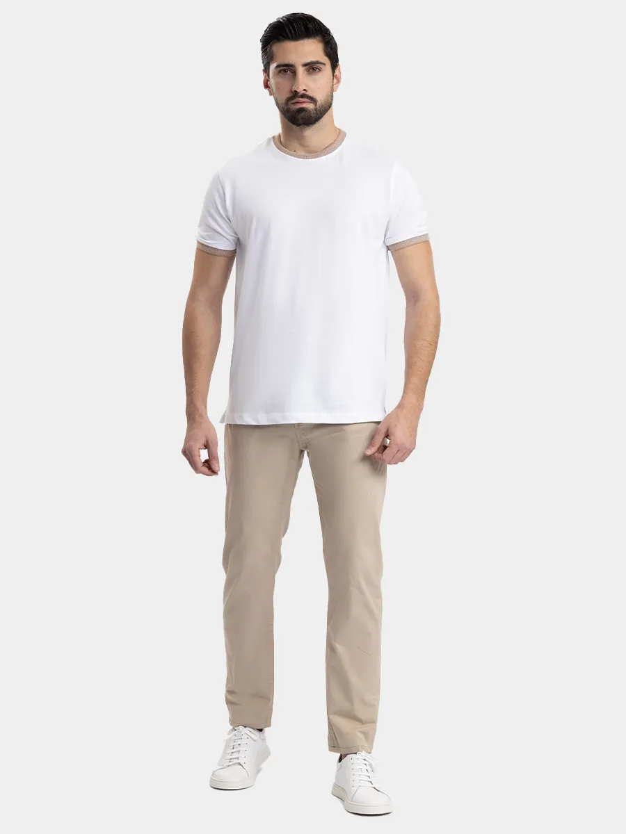 A modern twist on a classic. This round neck T-shirt features a contrast-colored neckline for a subtle pop of style, perfect for casual everyday wear.